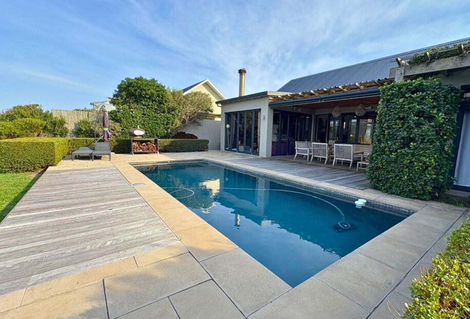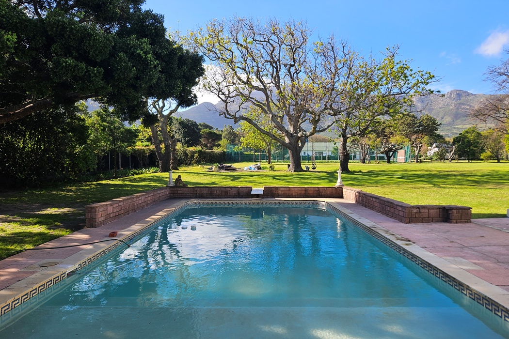 A magnificent home set in the sought after De Goede Hoop Estate in Noordhoek. The epitome of supreme beauty in design, décor and surroundings. 6 unique bedrooms, multiple magical living and leisure spaces, and a garden and a 14m eco pool...