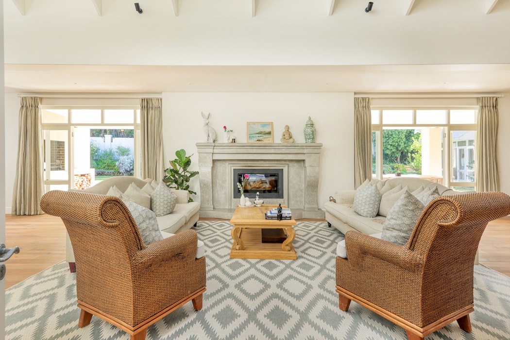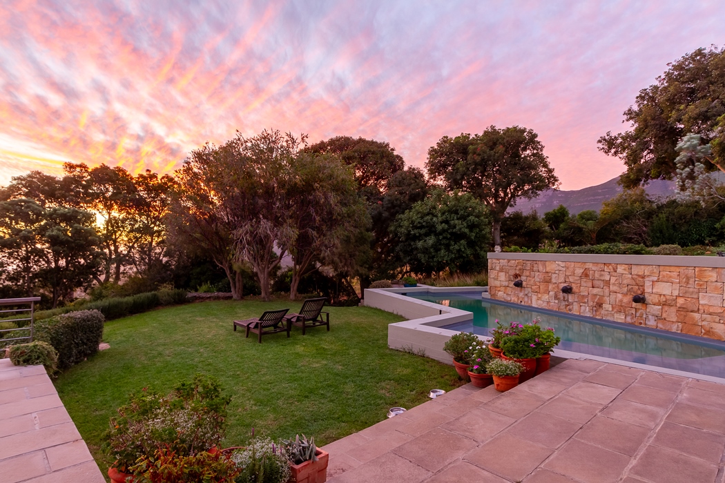 Noordhoek, known for its open spaces and rural charm, offers villas with expansive gardens designed for outdoor living. These grounds often include vegetable gardens, paths and walkways that lead through open lawns, shaded areas, and past features like ponds and seating spots, encouraging slow exploration and time spent in nature.