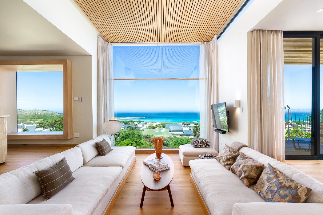 Sauvignon House, Fish Hoek, A 3-bedroom retreat in Stonehaven Estate with sweeping sea and mountain views, multiple lounges, and a private pool. Tucked into the mountainside, it offers a sense of privacy while still being a short drive to local beaches and coastal cafés.